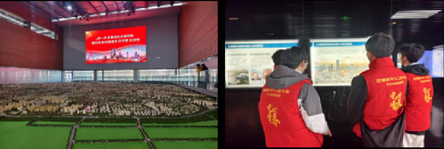 在讲解员的引导下,支部党员依次参观了历史展区、总体规划展区、交通规划展区、生态规划展区等主题展区。特别是在总面积约1000平方米的天津市中心城区规划模型前,党员们驻足良久,通过大型沙盘与屏幕影片的联动演示,深入了解了天津“一市双城多节点”的城市空间结构和“三区两带中屏障”的生态格局。
